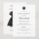 Elegante Invitación gótica a Baby Shower. El diseño cuenta con un sofisticado grabado en relieve de sellos de cera negra con un cráneo dorado, lo que añade un toque de elegancia gótica oscura. Personalice su invitación con texto personalizado bajo el sello, garantizando una invitación verdaderamente única. En el reverso se exhibe un vestido gótico de encaje negro, adornado con elegancia con un arco negro y un cráneo dorado. Este lado es personalizable, lo que le permite añadir su toque personal a la invitación.