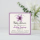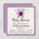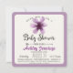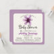 Cuidada, colorida, moderna y neutra invitación a la ducha de bebé con morado violeta, flor de acuarela de lavanda; diseño floral y fuentes negras sobre fondo blanco roto. Invitación retro para un niño o una ducha de bebé chica. Gran año para duchas de primavera, verano, otoño o invierno.