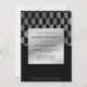 Haga una declaración audaz con esta moderna invitación a una fiesta de solteros negros y dorados, diseñada para el novio que valora la sofisticación atemporal. Con un elegante patrón geométrico de Relieve metalizado plateado falso y tipografía limpia y minimalista, esta invitación marca el tono para una elegante noche de salida o una celebración de cócteles de lujo. El fondo negro profundo, combinado con acentos metálicos plateados, crea un ambiente lujoso inspirado en el Art Decó, perfecto para salones, reuniones en la azotea o eventos privados. Completamente personalizable con la fecha del evento, la ubicación y los detalles del RSVP, esta elegante invitación al soltero es ideal para un envío refinado con el borde derecho.