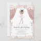 Celebra tu pequeña bailarina con esta invitación de cumpleaños de bailarina chica. Esta encantadora invitación de cumpleaños con tema de ballet cuenta con un chica con el pelo negro usando un ilustracion de tutu, flores de rosa rosa y crema y cortinas de escenario. ¡Elegante y divertido! Personalice fácilmente el uso de las herramientas de edición en línea.