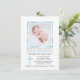 Elegante y delicado bautismo personalizado blanco y azul / Christening baby boy invitaciones. Marco de Relieve metalizado de oro falso en azul claro con FOTO / imagen y hermoso overlay. La parte posterior de la tarjeta tiene el monograma del bebé. Fácil de personalizar.