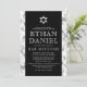 Elegante y moderno bar mitzvah invitaciones con bordes de textura de mármol blanco y tu texto de invitación en el centro sobre un fondo negro con una estrella blanca de David en la parte superior. Para más productos, pedidos de personalizados, ventas, noticias y más, por favor sígannos en Facebook: @chaiparery