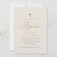 Invitación Elegante bautismo Beige Champagne Script Cross
