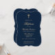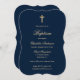 Invitación Elegante bautismo Chica con cruz de oro azul