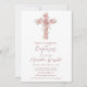 Invitación Elegante Bautismo Chica De Flores Cruzadas Y Rosa