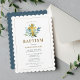 Esta elegante y sencilla invitación a la cristiandad incluye una hermosa vegetación azul acuarela y una cruz dorada sobre un fondo blanco. Utilice las herramientas de diseño para personalizar el texto, la fuente y los colores de fondo. También disponible como descarga.