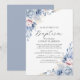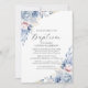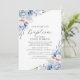 Invitación al bautismo de arte floral con flores en azul y blanco en el florecimiento del Boho minimalista