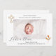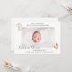 Celebra el bautismo de tu hijo o hija con esta bella y mínima invitación. Incluye una foto completa de su bebé (por favor, tenga en cuenta que el fondo más ligero funciona mejor), con una cruz de imitación antigua (tonos tierra) colocada en la esquina superior de la foto y el simple motivo botánico acuarela en la esquina inferior. La información está escrita en el lado a y abajo en la tipografía clásica y el nombre del bebé en el guión elegante de caligrafía se superpone parcialmente a la fotografía. En el reverso se ve la misma cruz de oro falso en el centro, sobre un fondo blanco limpio.