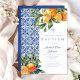 Invitación Elegante bautismo religioso cruzando azulejos azul