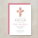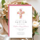 Elegante Personalizado Religioso Pink Floral Cross Baptism Invitation.