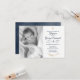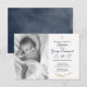 Elegante invitación de Bautizo en azul marino con detalles florales dorados. Está personalizada con tu foto. Encuentra productos coincidentes en nuestra tienda o contáctanos.