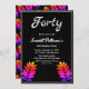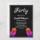 Invitación Elegante Black And White Glow Leaves 40 cumpleaños