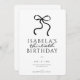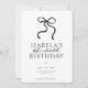 Una invitación atemporal para una celebración sofisticada. Esta invitación a los cumpleaños Black Bow presenta un minimalista diseño de cinta negra, perfecto para cumpleaños como fiestas 30, 40 y 50.