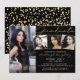 Invitación Elegante Black Gold Script 4 Photo Graduate