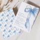 Invite a sus invitados a una hermosa celebración con una elegante invitación a la ducha de bebé "Dusty Blue Bow". Con una suave paleta de color azul polvoriento y un delicado diseño de arco, esta invitación exubera elegancia y encanto. La elegante tipografía le aporta un toque refinado, perfecto para una ducha de bebé atemporal y de moda. Ya sea una reunión íntima o una celebración más grande, esta invitación establece bellamente el tono para un evento memorable lleno de emoción y alegría mientras se preparan para dar la bienvenida a su pequeño niño al mundo.