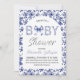 Invitación Elegante Blue Bow Toile de Jouy Floral Baby Shower