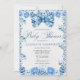 Invitación Elegante Blue Floral Bow Moda Baby Shower