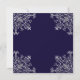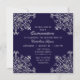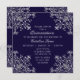 Elegante invitaciones de Quinceañera floral de plata blanca con un marco floral plateado y plateado en un fondo azul, con su información de Invitación de Quinceañera en el centro. Personalice editando el texto en los cuadros de texto. Diseñado por ©Evco Studio www.zazzle.com/store/evcostudio