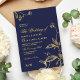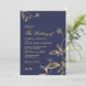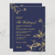 Moody azul marino oscuro y falso dorado elegante vintage antigua invitación a una boda romántica con ramas de follaje botánico y elegante guión clásico de caligrafía. ++++++++ Fácil de personalizar con tus detalles!