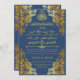 Invitación Elegante Boda Árabe e Inglés en Oro y Azul