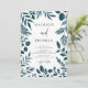 Invite a sus invitados, amigos y seres queridos a su boda con esta elegante y moda invitación a la boda en verde azuladas hojas de color azul.
