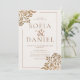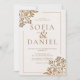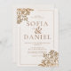Este elegante "Golden Floral Beige Wedding Invitation" combina elegancia atemporal con un toque de lujo. Con un suave fondo beige adornado con delicados acentos florales dorados, esta invitación desprende calidez y sofisticación. Los detalles dorados florales aportan un toque de romanticismo y riqueza, lo que lo convierte en un lugar ideal para las parejas que desean una estética refinada y lujosa. Los tonos neutros de la invitación y la tipografía elegante proporcionan un aspecto clásico que complementa a los bodas tradicionales, formales y de temática vintage con gusto.