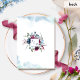Encanta a tus invitados con esta cautivadora invitación a la boda. Flores acuáticas elegantes y follaje en una mezcla de bayas, burdeos, ciruela, marina, polvorientos tonos azules y verdes que recubren sus nombres, mientras que delicadas manchas de color agua invitan a los espacios superior e inferior en una mezcla de suaves tonos azul y turquesa. De vuelta con las mismas manchas que el frente y magnífico ramo fino en el centro con área monograma con iniciales de parejas. Parte de nuestra colección "Berry Blue" con productos de coordinación disponibles.