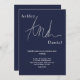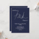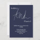 Esta elegante invitación a la boda azul marino es perfecta para un boda moderno. el diseño es sencillo, con una elegante caligrafía blanca sobre un fondo azul.