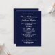 Un elegante azul marino con invitación a una boda de texto blanco, adecuado para parejas que intercambian votos en un lugar y asisten a su recepción en otro lugar.