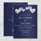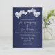 Elegante invitación a la boda blanca de la marina diseñada con suaves corazones blancos sobre un fondo de color marina. El texto de la invitación incluye: Junto con sus familias, los nombres completos de la novia y de Groom, solicitar el honor de su presencia en su Boda, La fecha y hora, La ubicación y dirección del Boda, la recepción a seguir. El texto en reverso incluye: RSVP y los detalles de contacto. Para personalizar, simplemente inserte su texto en nuestra plantilla sencilla, reemplazando el texto de ejemplo.