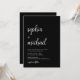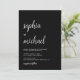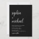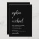 Celebra tu unión con una invitación minimalista a la boda que destaca maravillosamente tus nombres. El sofisticado fondo negro proporciona un impresionante lienzo para el elegante guión manuscrito blanco, con un tipo de letra simple y limpio para todos los detalles importantes. Este diseño de moda es perfecto para una celebración boda moderna y elegante.