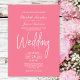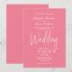 Una elegante invitación minimalista a la boda rosa con texto blanco.