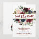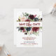 Anuncia a tus invitados que estás atando el nudo con esta espléndida, chic y elegante invitación de compromiso floral azul marino y merlot dorado Save the Date. Puedes personalizar y customizar esta invitación.