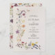 Revelar la narrativa encantadora de las flores silvestres. Tradicionalmente, los bodas con temática de flores silvestres celebran la espontaneidad, el crecimiento y la resiliencia. Como estas flores que prosperan en la naturaleza salvaje, el amor también encuentra una manera de florecer en todas las circunstancias. Esta invitación, adornada con vegetación entrelazada y flores silvestres, hace eco de este sentimiento. Personalizar de hacerlo verdaderamente tuyo y dejar que florezca tu historia de amor.