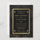 Elegante diseño botánico de Relieve metalizado Black and Gold Faux con marco dorado