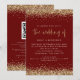 Invitación Elegante Boda con Brillo Dorado y QR en Borgoña