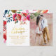 Elegantes invitaciones a bodas con un fondo blanco clásico, una foto del novio y la novia, una exhibición floral de acuarela, un elegante título tipográfico de Relieve metalizado de oro falso y una plantilla moderna de boda.