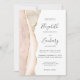 El borde izquierdo de esta elegante y moderna invitación a la boda se caracteriza por un borde de aguate acuarela en tonos marfil y rubor, adornado con un falso purpurina de oro. El texto del personalizable combina escritura a mano, copperplate y cursiva en gris carbón sobre fondo blanco. El reverso presenta un diseño de marfil y agate dorado a juego.