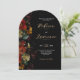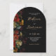Romántico con un borde, este elegante Moody Flowers estilo arco Invitación a la boda combina el diseño contemporáneo con florales ricos y dramáticos para un look atemporal y audaz. Con un impresionante arreglo de florecimiento en tonos profundos, pensar en burdeos, ciruela, marina y rubia, ambientada en un fondo oscuro y morboso, esta invitación es una primera impresión cautivadora. La tipografía moderna equilibra las líneas depuradas con la escritura fluida, dando al diseño un toque refinado y artístico. Es ideal para bodas nocturnos, celebraciones de otoño o invierno, o parejas que aman un toque de elegancia gótica.