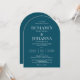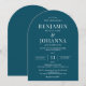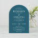 Elegante invitación a la boda en arco con un fondo verde azulado y letras blancas. Diseño de sólo texto con una redacción tradicional. Opciones de papel impreso físico o imprimible digital. Personalízalo con los nombres del Sr. y la Sra., ubicación del lugar, registro, información de RSVP, y cualquier detalle que necesite incluir. Se ofrecen productos de la suite correspondientes.