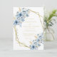 Haga una impresionante primera impresión con esta elegante invitación a bodas con marco geométrico floral azul. Con una sofisticada mezcla de flores polvorientas azules y navales, este diseño está enmarcado en un moderno borde geométrico de oro, añadiendo un toque de elegancia y romanticismo.
