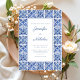 Elegante invitación a la boda de azulejos azules mediterráneos.