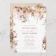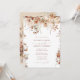 Este elegante diseño de Invitación a la Boda exuda una belleza encantadora que capta la esencia del esplendor del otoño. La delicada combinación de exquisitos motivos florales crea una invitación realmente cautivadora. El diseño se eleva aún más con la inclusión de una caligrafía elegante. El tipo de letra manuscrito le da un aire de refinamiento y gracia, complementando perfectamente el tema general. Cada carta fluye sin esfuerzo, capturando la atención del espectador y transmitiendo una sensación de elegancia atemporal. Esta invitación resume el encantador ambiente de un boda de otoño, invitando a los huéspedes a participar en una celebración llena de amor, calor y esplendor natural. Los elementos coincidentes están disponibles.