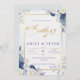 Invitación Elegante Boda de borde dorado con flores azules