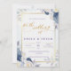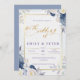 Invitación Elegante Boda de borde dorado con flores azules