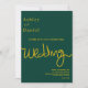 Esta elegante invitación a la boda de oro y verde es perfecta para un boda moderno. el diseño es sencillo, con una elegante caligrafía de oro sobre un fondo verde.