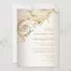 Invite a sus huéspedes bodas con estilo con esta sencilla pero elegante invitación a bodas con damasco floral de imitación dorada con detalles bodas en tipografía de escritura dorada sobre un brillante fondo de champán. ¡Mis mejores deseos para su boda y matrimonio! Diseñado por Susan Coffey.