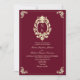 Haga una declaración audaz con esta elegante invitación a una boda burdeos con acentos de oro vintage y un marco de monograma clásico. El fondo de color rojo intenso aporta sofisticación, mientras que el código QR incluido hace que el RSVP sea sencillo y práctico para las parejas modernas. Los huéspedes pueden escanear para responder y acceder a la página web de su boda con todos los detalles. Perfecto para una romántica caída o boda de invierno.