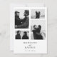 La invitación a la boda presenta un diseño minimalista y elegante con un fondo blanco limpio y texto negro. Utiliza una mezcla de tipos de letra audaces y cursivas, con nombres de la pareja destacados en texto grande para dar énfasis. Los detalles se centran y escriben con una letra serif más pequeña, creando un diseño equilibrado y refinado con amplio espacio blanco para una estética moderna y sofisticada. Esta invitación a la boda presenta un diseño minimalista con una cuadrícula de cuatro sentidas fotos de la pareja en la parte superior. La parte inferior utiliza una tipografía serif elegante y centrada para los detalles clave, creando un aspecto equilibrado y sofisticado que destaca la calidez y la intimidad.