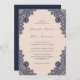 Invitación Elegante Boda de encaje azul de la Marina de Champ